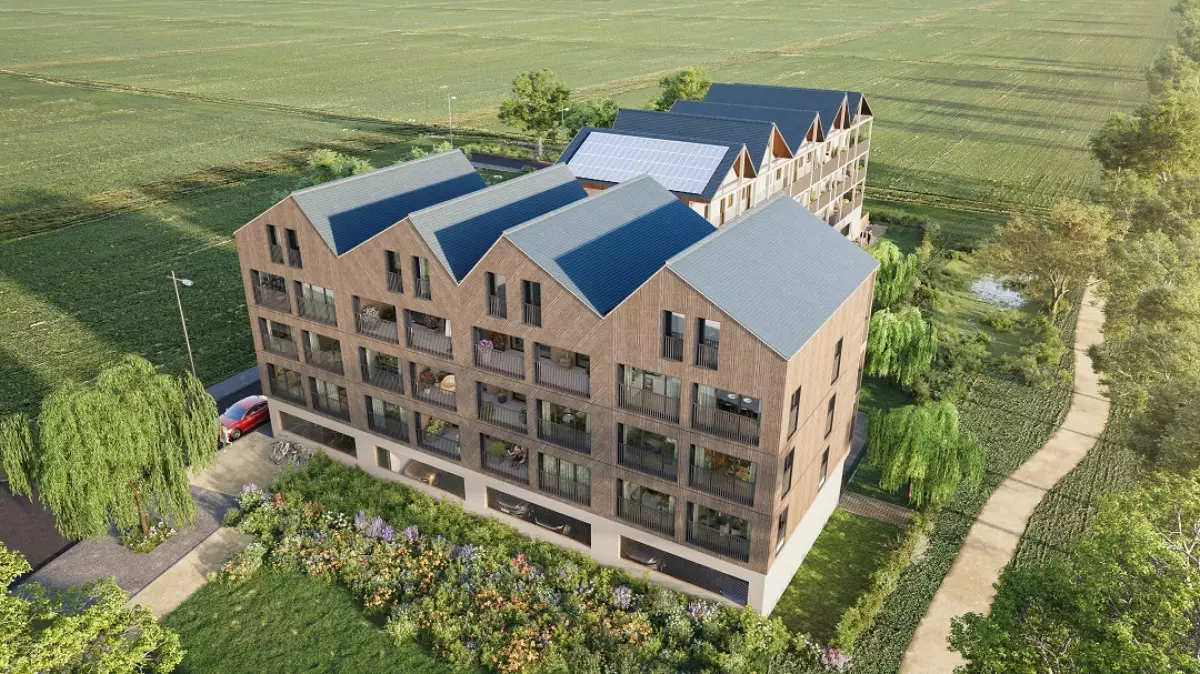 La résidence s’organise en deux bâtiments au vocabulaire architectural soigné avec un bardage bois, proposant 27 logements du T3 au T5. Pensés pour les familles comme pour les besoins d’espaces plus généreux, les appartements sont majoritairement traversants ou bi-orientés afin de favoriser l’apport de lumière naturelle grâce à des orientations privilégiées (Sud / Ouest) et de larges baies équipées de brise-soleil orientables ou volets roulants.